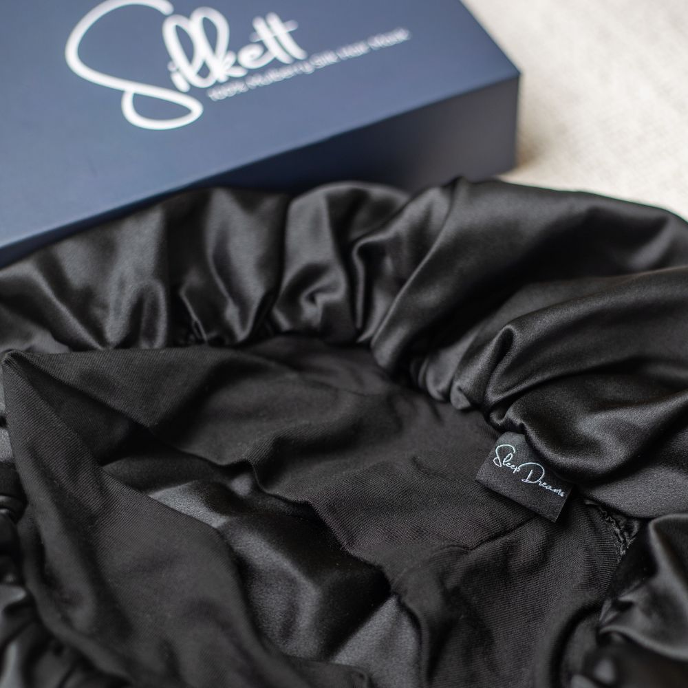 Mulberry silk is a premium natural fiber produced by silkworms fed exclusively on mulberry leaves, known for its superior softness, strength, and hypoallergenic properties. It's perfect for hair bonnets like the Silkett™ because it minimises friction, retains hair moisture, and is breathable, helping prevent dryness, breakage, and frizz while you sleep - making it a luxurious choice for overnight hair protection.